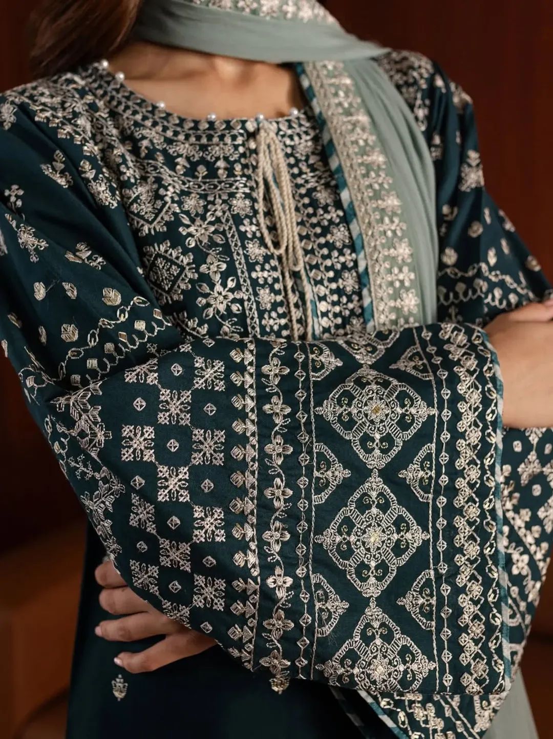 crinkle-chiffon dupatta featuring detailed borders. Paired
